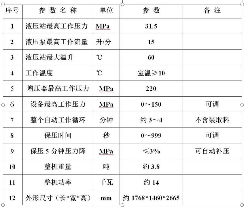 GDJ 150/800-150-A干帶等靜壓機技術(shù)參數(shù)表